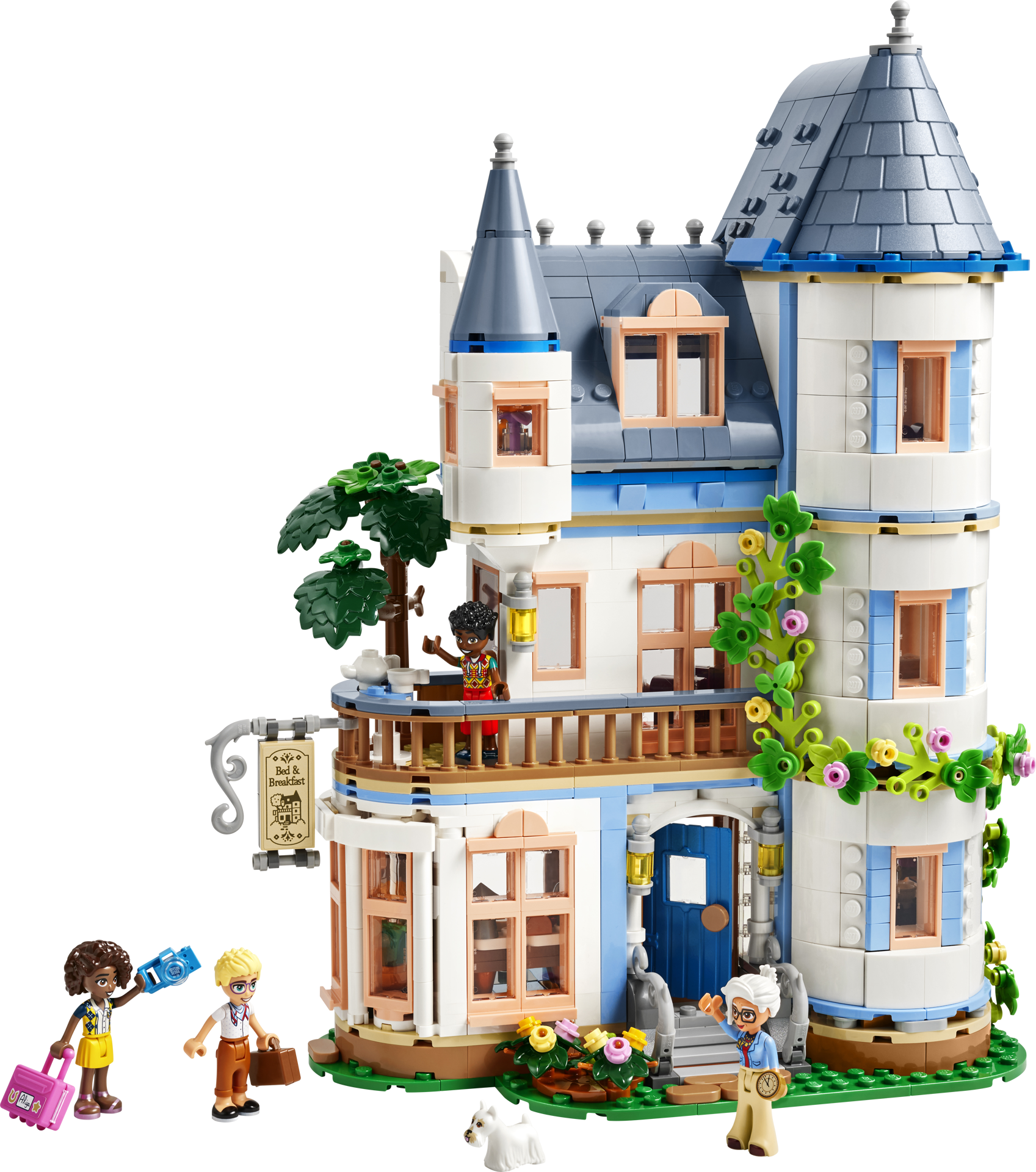Inspire kids and teens aged 12 years old and up to build their own French-style château with this Castle Bed and Breakfast (42638) toy hotel playset. The detailed 3-story model comes with 4 LEGO® Friends mini-dolls, a dog figure and lots of accessories so kids can set the stage for endless guest adventures. This hotel is 3-Stories plus an attic and comes with lots of accessories – This set is packed with accessories, including suitcases, breakfast items, dog bowls, towels, soap, a rubber duck, phone, camera, umbrella, globe, treasure chest and much more. Measurements – 1,311-piece hotel playset for kids measuring over 12 in. (31 cm) high, 8 in. (21 cm) wide and 4.5 in. (12 cm) deep