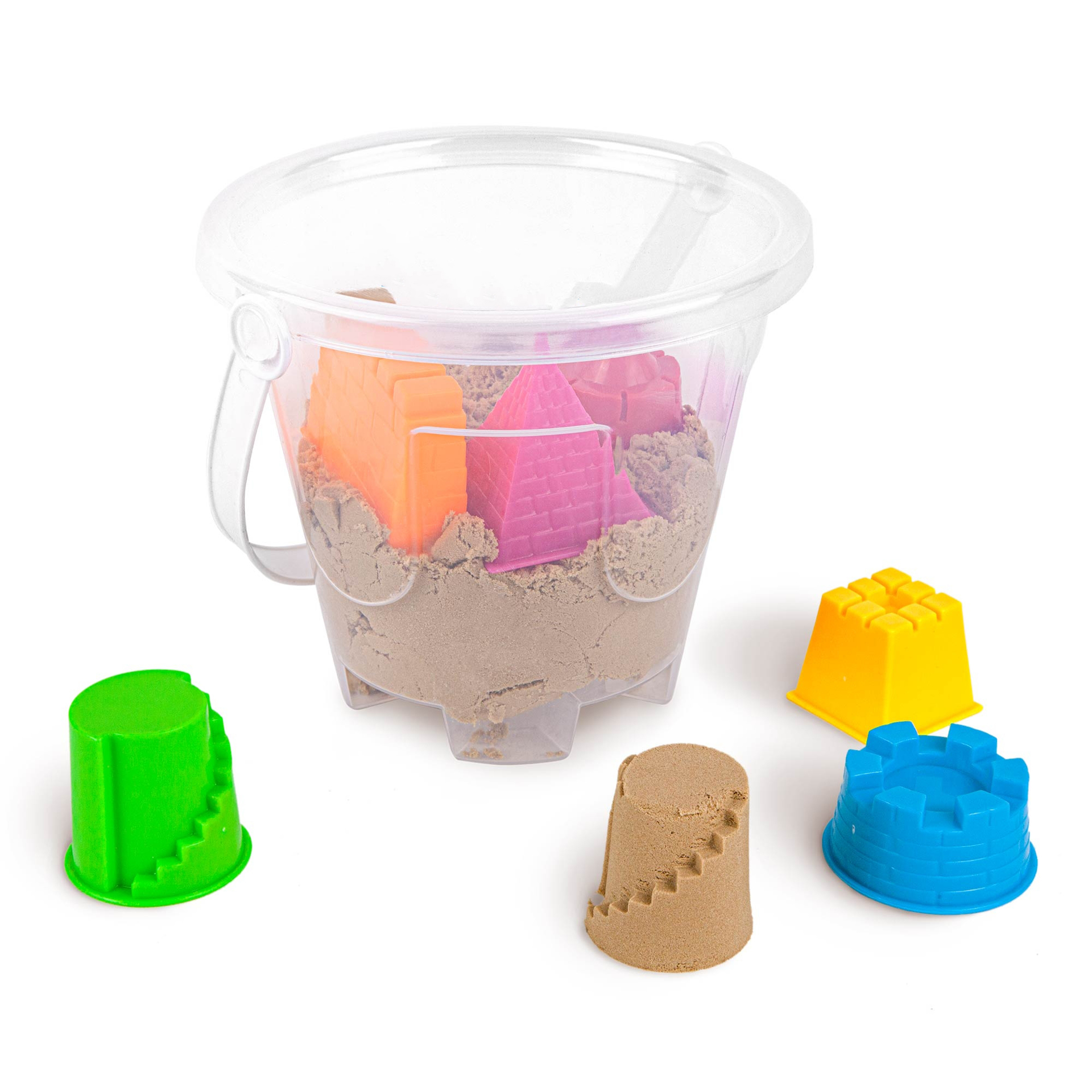 Make shapes with the supplied molds or squeeze the sand between your fingers to pass the time, even if you're stuck at home. Magic Sand Features: The sand sticks only to itself and not to your clothes. Comes with molds and reusable castle bucket to form all kinds of shapes. Magic sand never dries out. This sensory toy is good for stress relief. Contains 500g sand, 6 molds, and 1 bucket.